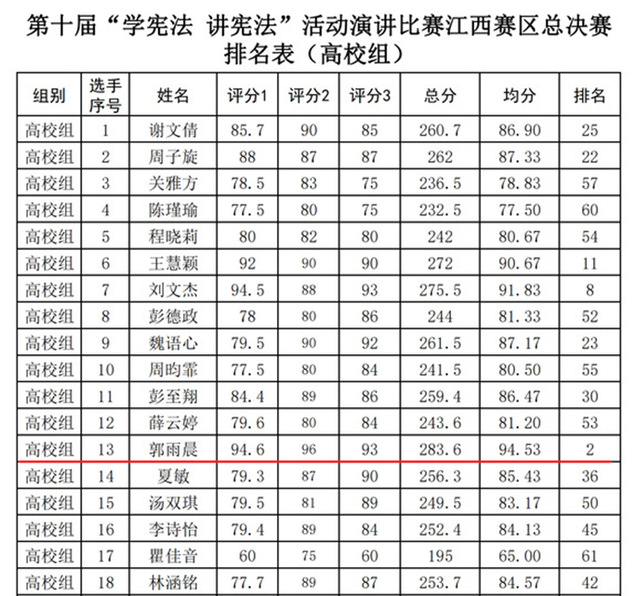 112日,由中共江西省委教育工委、江西省教育厅主办,教育部全国青少年普法网协办的第十届全国学生学宪法 讲宪法演讲比赛江西赛区总决赛圆满落幕。地球与行星科学乐竞官网2024级旅游地学与规划工程专业学生郭雨晨获演讲比赛高校组二等奖(全省总排名第2)。