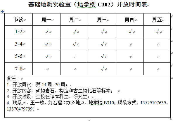 地球科学乐竞官网2019-2020学年第二学期实验室开放安排