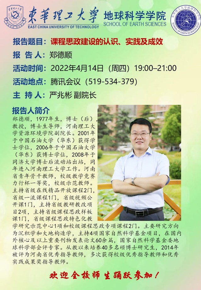 河南理工大学郑德顺教授关于高校课程思政的讲座通知