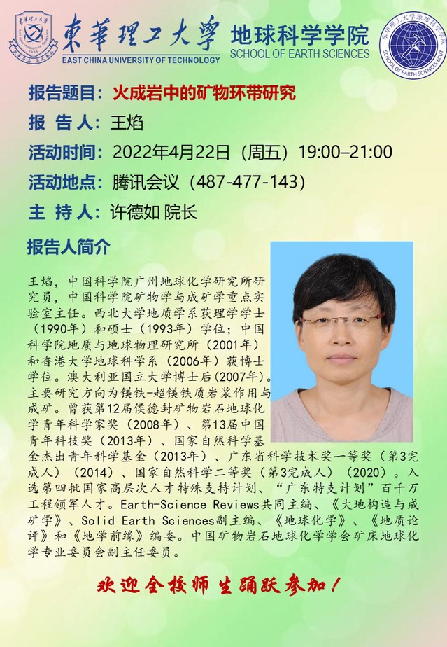 王焰研究员关于火成岩中矿物环带研究的讲座通知